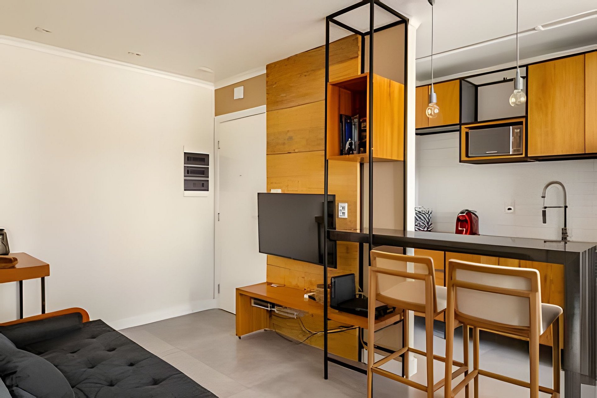 Wi-Fi, televisão no quarto e na sala, canais por assinatura e streaming estão disponíveis.