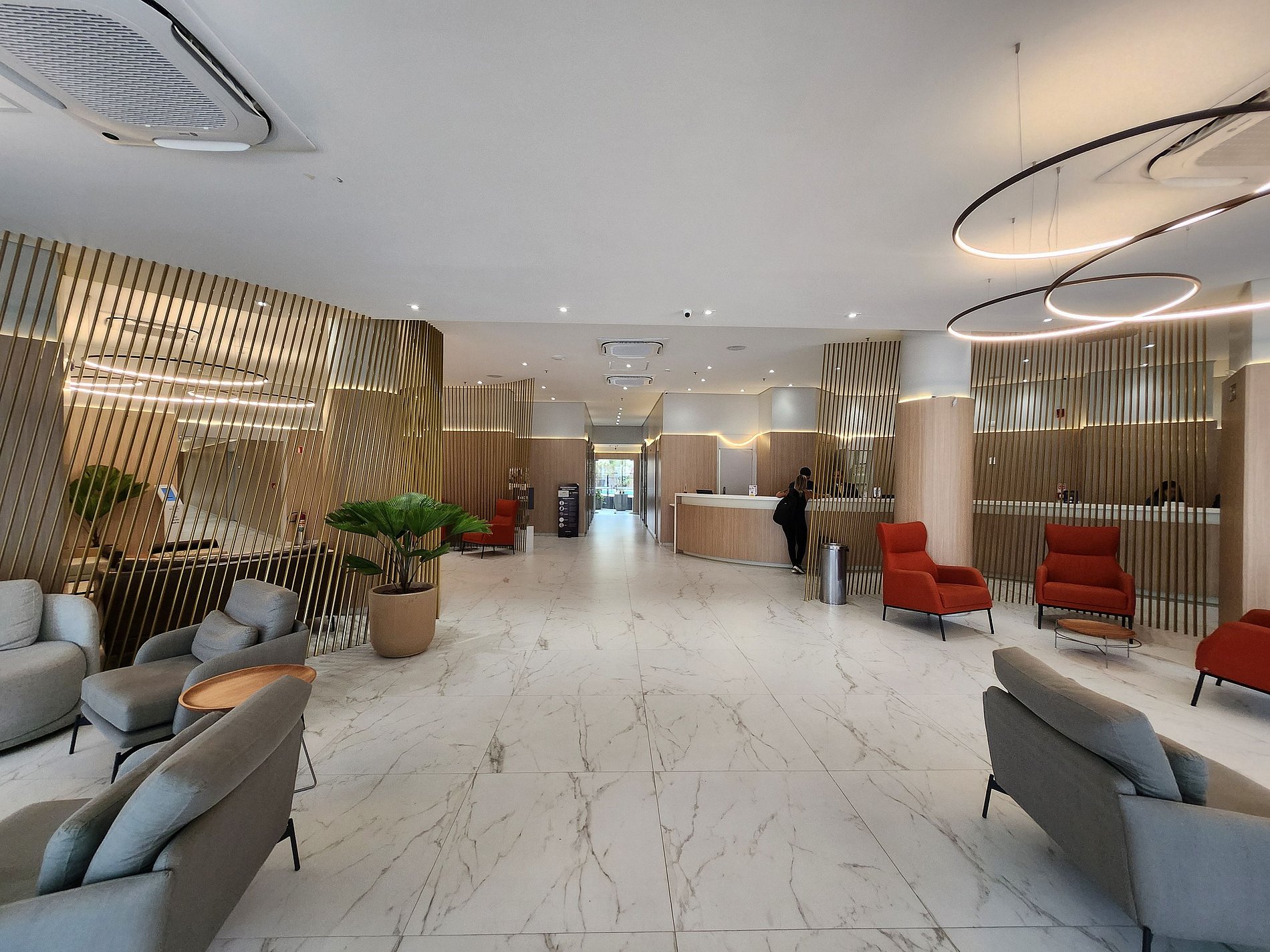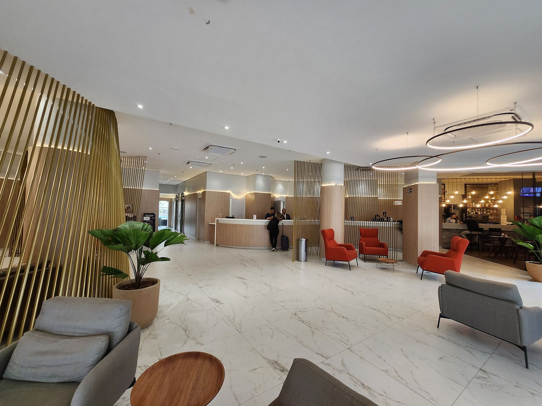 A recepção funciona 24hs, o que facilita o check-in à noite.