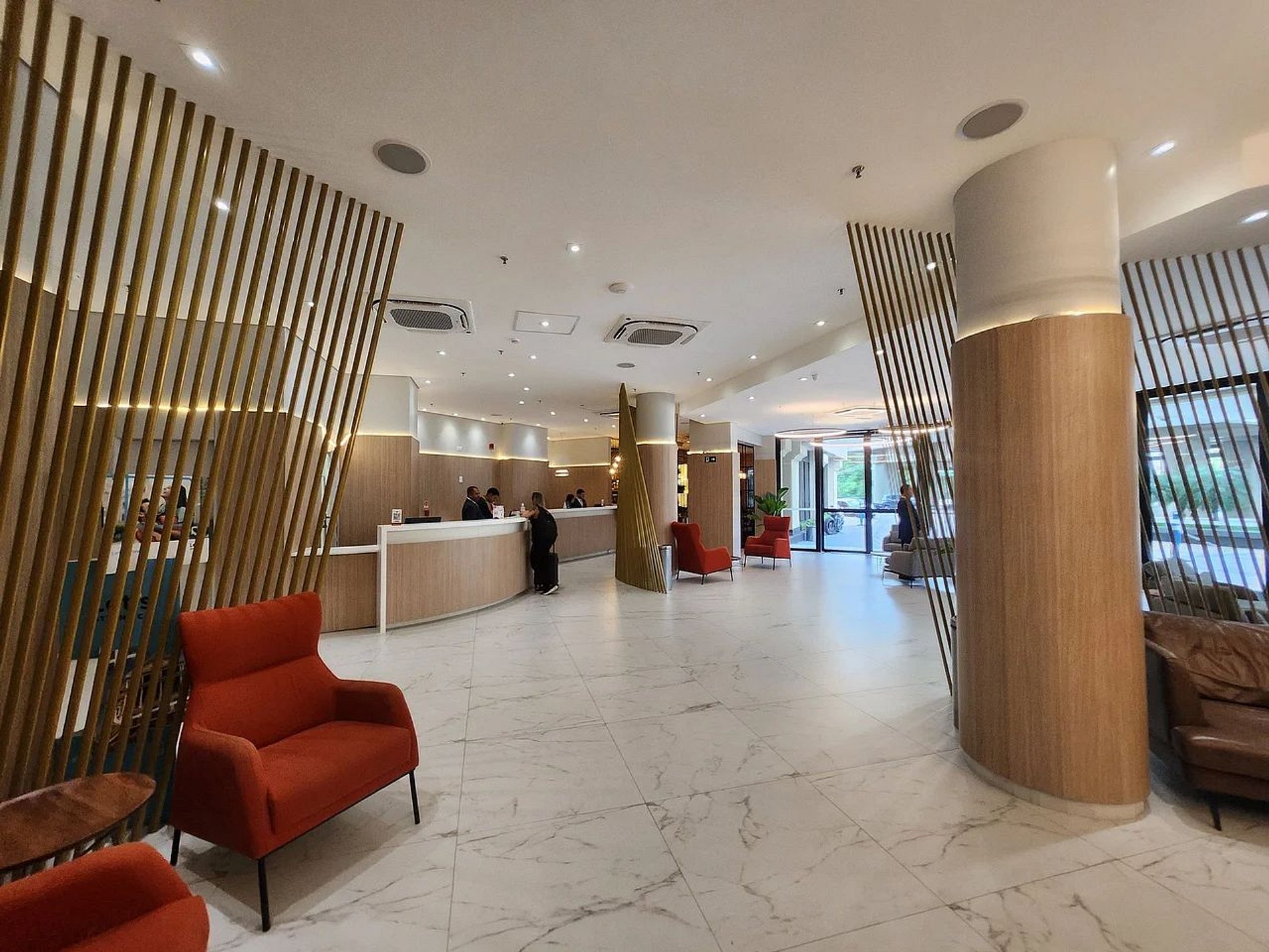 A recepção funciona 24hs, o que facilita o check-in à noite.